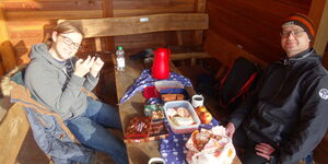 Den ersten Abend bis nach Mitternacht haben wir mit viel "weisst du noch..." verbracht. Dank der wunderbar ruhigen Lage des NFH habe ich geschlafen, wie ein Herrgöttlein. Auch wenn ich damals am Baikalsee schon gebadet und Feuer gemacht hatte, bis die anderen endlich aus ihren Schlafsäcken krochen, hier im NFH musste mich Gunnar wecken. Er hatte bereits frische Brötchen besorgt und der Tisch war mit einem reichhaltigen Frühstück gedeckt.