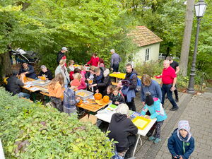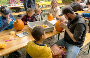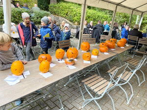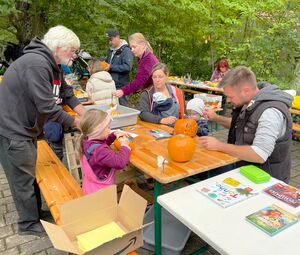 So fällt das Fazit des diesjährigen Herbstfestes der NaturFreunde aus. Zum Abschluss der Saison war der Garten im Sendelbachtal in Veitshöchheim noch einmal sehr gut gefüllt. Und die Zielgruppe, Eltern mit ihren Kindern, sie kamen bei schönem Wetter zuhauf. Ab 13 Uhr wurden Zierkürbisse bemalt, kiloschwere Kürbisse ausgehöhlt und anschließend zu z.T. gruseligen Masken geschnitzt. Am Ende waren alle knapp 90 Kürbisse aus der Gärtnerei Klinger mit viel Fantasie gestaltet. So fiel es schwer die schönsten Exemplare für die Prämierung zu ermitteln. Das Los entschied am späten Nachmittag wer jeweils zu den fünf glücklichen Gewinnern von Buchpreisen aufgerufen wurde. Zur Überraschung hatten die Verantwortlichen jedoch für jeden der Teilnehmer noch ein leckeres Eis bereit. Gleiches gilt für die knapp 30 Kinder, die am Herbstquiz ihr Wissen überprüfen konnten. Ein paar ganz Geschickte halfen noch am Grillstand mit. Sie verdienten sich durch kräftezehrendes Reiben der Muskatkürbisse ihr selbstgemachtes Rösti durch eigene Muskelkraft. Dazu gab es leckeren Apfelbrei aus frischen Äpfeln am Samstag selbst produziert.