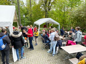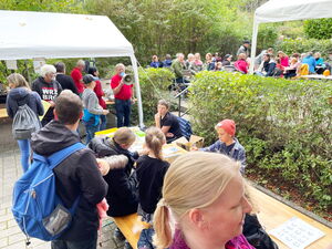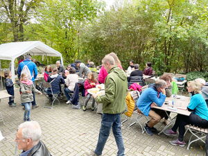 Gleichermaßen gut kam bei Jung und Alt die frisch zubereitete Kürbissuppe, mit oder ohne Würstel, an. Dazu musste unser Koch Marc 15 kg Hokaido-Kürbisse verarbeiten, und ab 16:30 Uhr hieß alles ausverkauft. Und selbst bei den hausgemachten Kuchen der Mitglieder des Vereins stand neben der Zwetschge, den Äpfeln der Kürbis auf der Rezeptur. Alles selbst zubereitet, alles aus heimischen Gärten und mit Liebe zur Natur zubereitet. Damit war es dem Verein wieder einmal bei einem seiner schon traditionellen Herbstfeste gelungen, den Besuchern aufzuzeigen, wie lecker und zugleich preiswert ein einfaches, gesundes Essen sein kann, das auch noch allen Generationen schmeckt! Diese Erkenntnis hörte Mitorganisator Sigi Hofmann in vielen Gesprächen mit Eltern heraus, die NaturFreunde sehen darin ein Lob aber auch einen Anreiz für weitere Feste / Veranstaltungen dieser Art.
