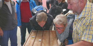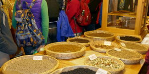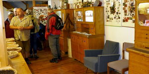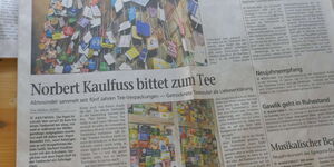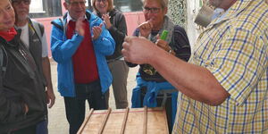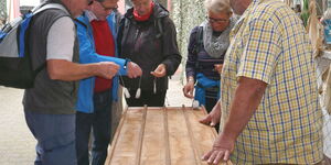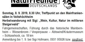 30 NaturFreunde mit einigen Gästen machten sich auf den Weg ins historische Weindorf Abtswind, gleichermaßen Start- und Zielpunkt unserer Tour. Unsere erste Station, das Kräutermuseum der Familie Kaulfuss, sollte sich als Glücksgriff erweisen. Der Chef selbst führte uns durch sein auf 14000 qm größtes privates Museum dieser Art auf der Welt. Schon der Start war originell und zeigte uns den einmaligen Humor des Chefs: Teebeutelrennen auf einer selbst gebauten Rüttelmaschine. Schnell merkten wir, hier wirkt ein Mensch, dessen Herz an jedem einzelnen Objekt hängt, nicht zuletzt, weil er wirklich alles selbst zusammengetragen hat: Säcke mit Potpourris ( Mischungen ) aus Kräutern und Gewürzen, deren Namen die wenigsten von uns kannten. Räume mit Tausenden von Exponaten an Teebeuteln wechselten sich ab mit Verpackungen für Tee, Kaffee und andere Genussmittel; sein Zitat:“ Sie finden kein Objekt ein zweites Mal!“ Gruselig wurde es, als wir sahen, was sich im Laufe der Jahre an Spinnen und anderen „Ureinwohnern“ in den Säcken, Kisten etc. bis nach Abtswind gewagt hatte. Ganz stolz berichtete Herr Kaulfuss, dass er einen Großteil seiner Produktionsmaschinen selbst entwickelt und gebaut hat! Am Ende der mehr als interessanten, kurzweiligen Führung war seine Verabschiedung aus seinem „Kuscheltierzimmer“ passend zu dem Naturmenschen Kaulfuss, den man einfach erlebt haben muss! „Wir beliefern keine Großabnehmer, wenn Sie was kaufen wollen, dann gehen Sie einfach zu meiner Frau, die wartet schon auf Sie im Laden nebenan“ Gesagt, getan, und so endete unser Besuch erst nach über zwei Stunden. Das hat sich gelohnt!!