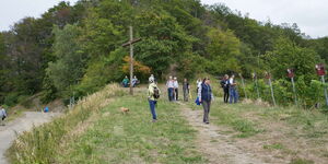 „Abzweig Abtswind 2,5,km“, diesem Hinweis folgend ging`s erst durch lockeren Buchenwald bis zum Aussichtplateau „Frankenblick“ am höchsten Punkt der Weinlage „Abtswinder Altenberg“ gelegen. Die reifen Trauben begleiteten uns bis an den Ortsrand.