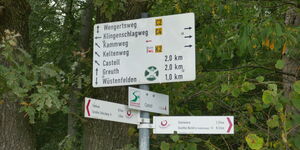 Vorbei am „Haus des Gastes“, hier verlief bis zur Gebietsreform im Jahre1972 die Bezirksgrenze zwischen Unter- und Mittelfranken, erreichten wir den „Weinwanderweg“ dem wir durch die Flur und die Weinberge – die Trauben sind schon sehr süß – bis nach Castell folgten. Von weitem erkannten wir schon etliche „Stationen“ aufgebaut für die „Casteller Weinwandertage“. So drängten sich im Casteller Schlosspark viele Menschen, um an einem der Stände Durst und Hunger zu stillen.