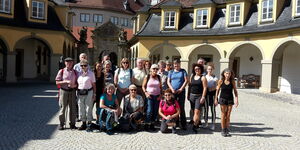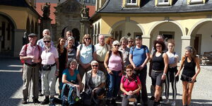 Bei herrlichem Sonnenschein trafen sich 20 Wanderer im Hauptbahnhof Würzburg. Nach der Begrüßung durch Anne Hausknecht-Gülle (Wanderleiterin) und Jürgen Schrader (Vorsitzender) ging‘s mit der Bahn ins Taubertal nach Elpersheim. Über den Weinwanderweg, mit herrlichem Blick auf den Schlossgarten und das Schloss, erreichten wir den historischen Marktplatz von Weikersheim.