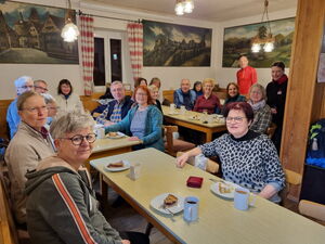 Die 325 Höhenmeter - auf und ab - bewältigten die Wanderer trotz kurzer Schauer und Nieselregen gut und alle freuten sich auf Kaffee und Kuchen in der Wärme des Naturfreundehauses. Unser besonderer Dank geht an Stefan und Ulrike fürs Kaffeekochen und an die Kuchenbäcker!