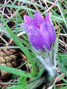Trotz der Schlechtwetterprognosen trafen sich am Palmsonntag 25 NaturFreunde und Gäste mit ihren Wanderführerinnen Christel Schramm und Brigitte Schabel-Unger und dem Vorstand der Ortsgruppe Jürgen Schrader, um den neu angelegten Natura Trail mit 15,4 km zu erwandern. Der Natura Trail folgt bereits bestehenden Wegemarkierungen verschiedener Wanderwege. Die Navigation erfolgt durch Online-Navigationssysteme (per GPX-Track) oder einem Faltblatt mit Karte und streift Wälder, Felder, Weinberge von Veitshöchheim, Güntersleben und Thüngersheim. Der Höhepunkt dieses Weges bildet das Naturschutzgebiet „Höhfeldplatte“. Dieses liegt oberhalb der Thüngersheimer Weinberge auf dem kargen Boden des Muschelkalkes. Dort wachsen auf einem speziellen Magerrasen kleine Kiefern und endemische Pflanzen mit zahlreichen Orchideen. Wir entdeckten viele „Gewöhnliche Küchenschellen“ und kleinere Austriebe der ersten Orchideenpflanzen, die wahrscheinlich Ende April blühen werden.